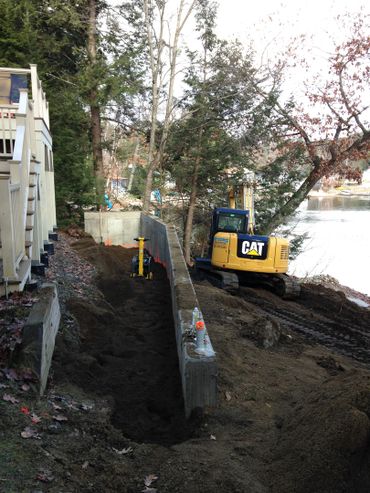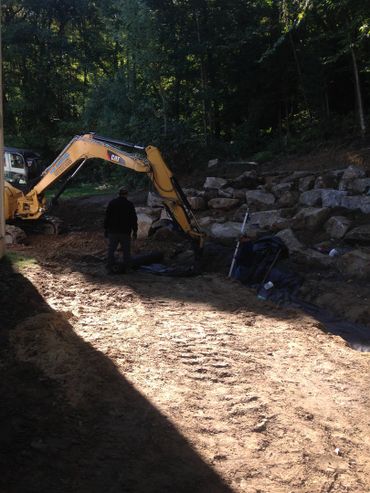 We solve drainage issues, grade driveways, spread loam, remove stumps, bury gas/electrical/water/sewer lines, prep shed pad site, generator pads, build handicap accessible ramps and parking spaces to A.D.A standards, install precast concrete piers and bollards